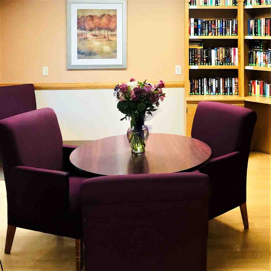 Daily Activities | Outdoor Patio With Music | Common Area Spaces | Hair Salon | Dining Room With Atrium | Library / Sitting Room | Complimentary Cable |